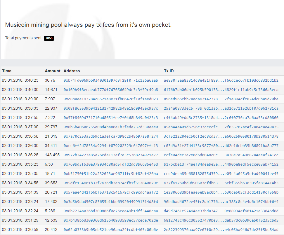 Не буду делать долгих вступлений, скажу просто, что нашел интересный пул для майнинга музыки и еще пары монет созданных на алгоритме Эфира под названием www.musicoin.miningpond.com.