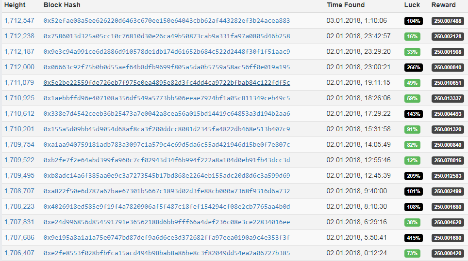 Блоки находятся регулярно, менее чем каждый час, на пуле находится очередной блок, в котором 250.007488 монет.
