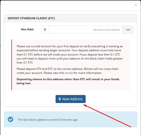 Теперь нажимаем на кнопку «New address» и генерируем номер кошелька, который используем в майнере.