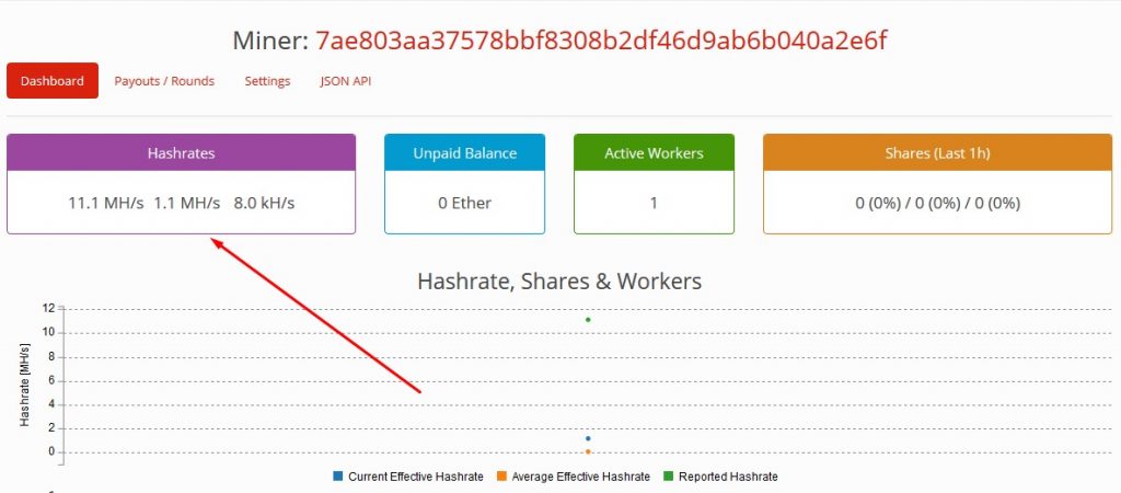 Теперь проверяем на пуле, учитывает ли он работу нашего майнера: