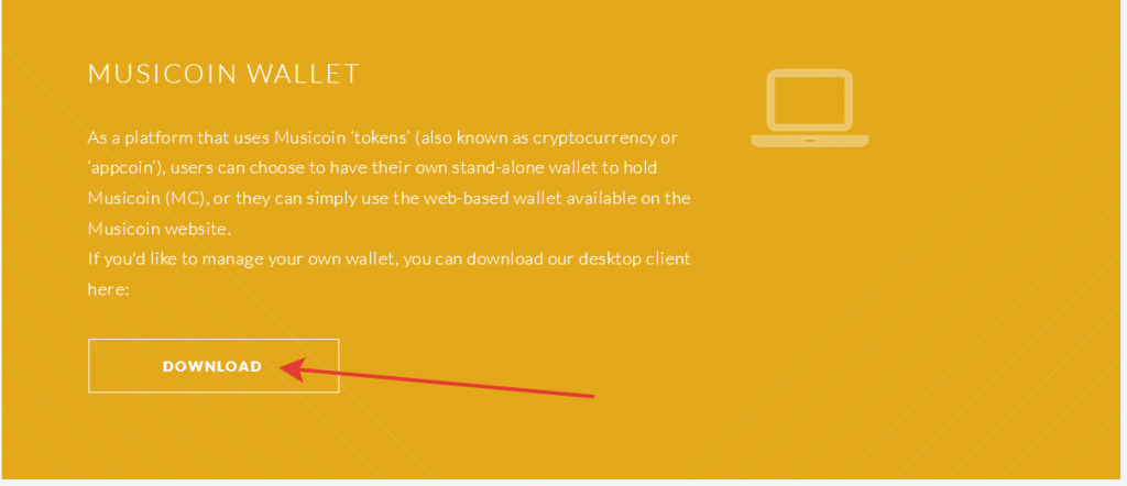 Если решили сделать себе локальный кошелек, тогда заходим на официальный сайт https://musicoin.org/, листаем вниз пока не появится надпись Musicoin Wallet, после чего клацаем на Download.
