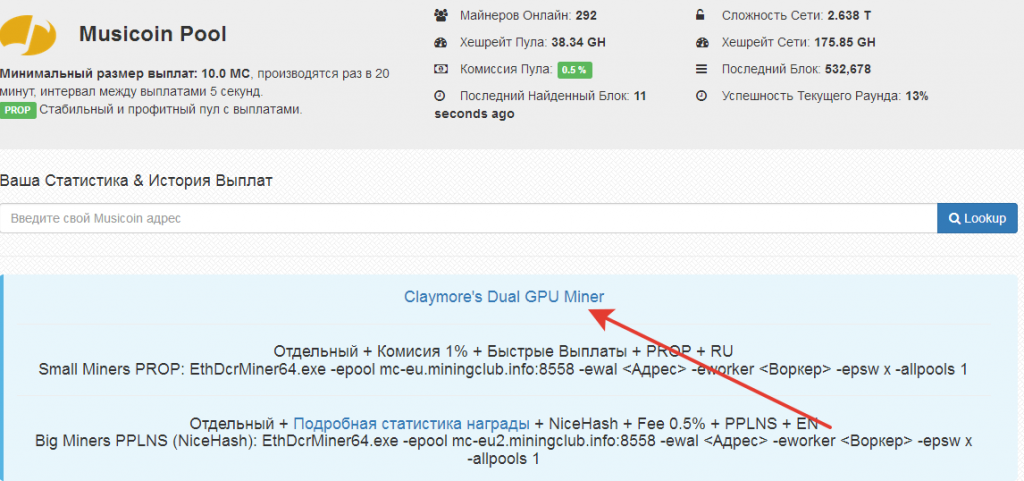 Для начала найдем пул, через который будем майнить, считаю самый для Musicoin это пул musicoin.miningclub.info, по крайней мере там честно насчитывают Ваш хешрейт.