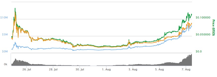 На данный момент монета показывает дикий рост, как курса так и капитализации, так что по крайней мере она довольно интересна.