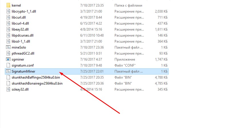 Теперь в папке с майнером создаем bat файл назовем его допустим SignatumMiner: