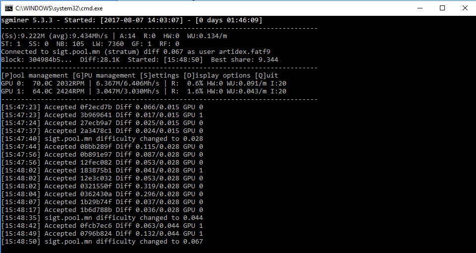 sgminer -k skunkhash -o stratum+tcp://sigt.pool.mn:8732 -u Логин.Воркер -p Пароль -I 20