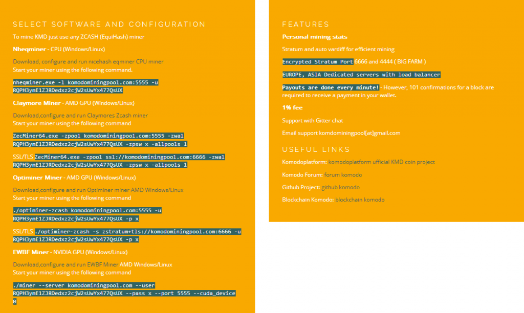 Я перепробовал несколько разных пулов но остановился на komodominingpool.com, в связи с тем, что он предельно понятен, настройки из него по крайней мере на картах AMD работают.