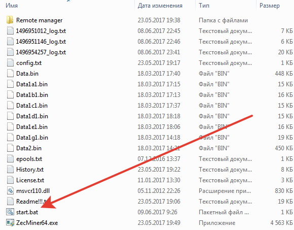 Копируем содержимое верхнего поля и вставляем его в start.bat: